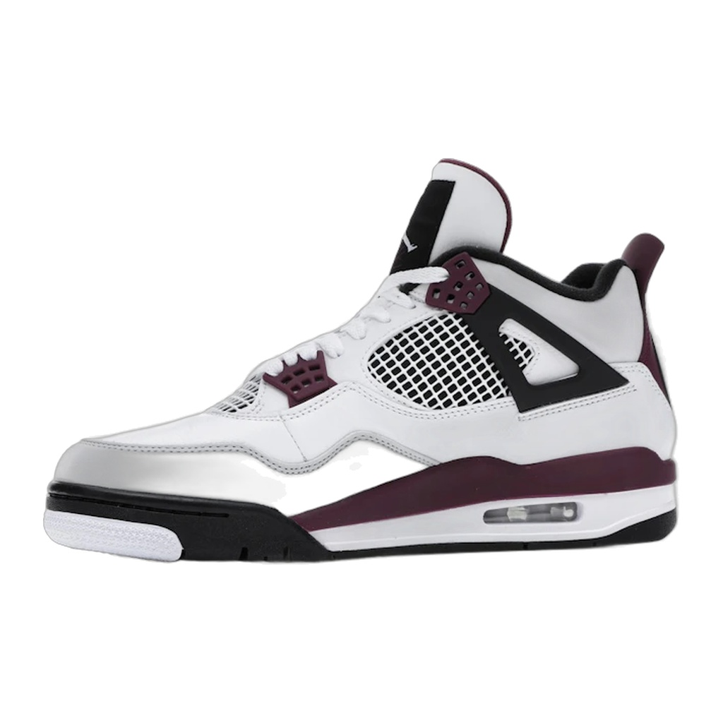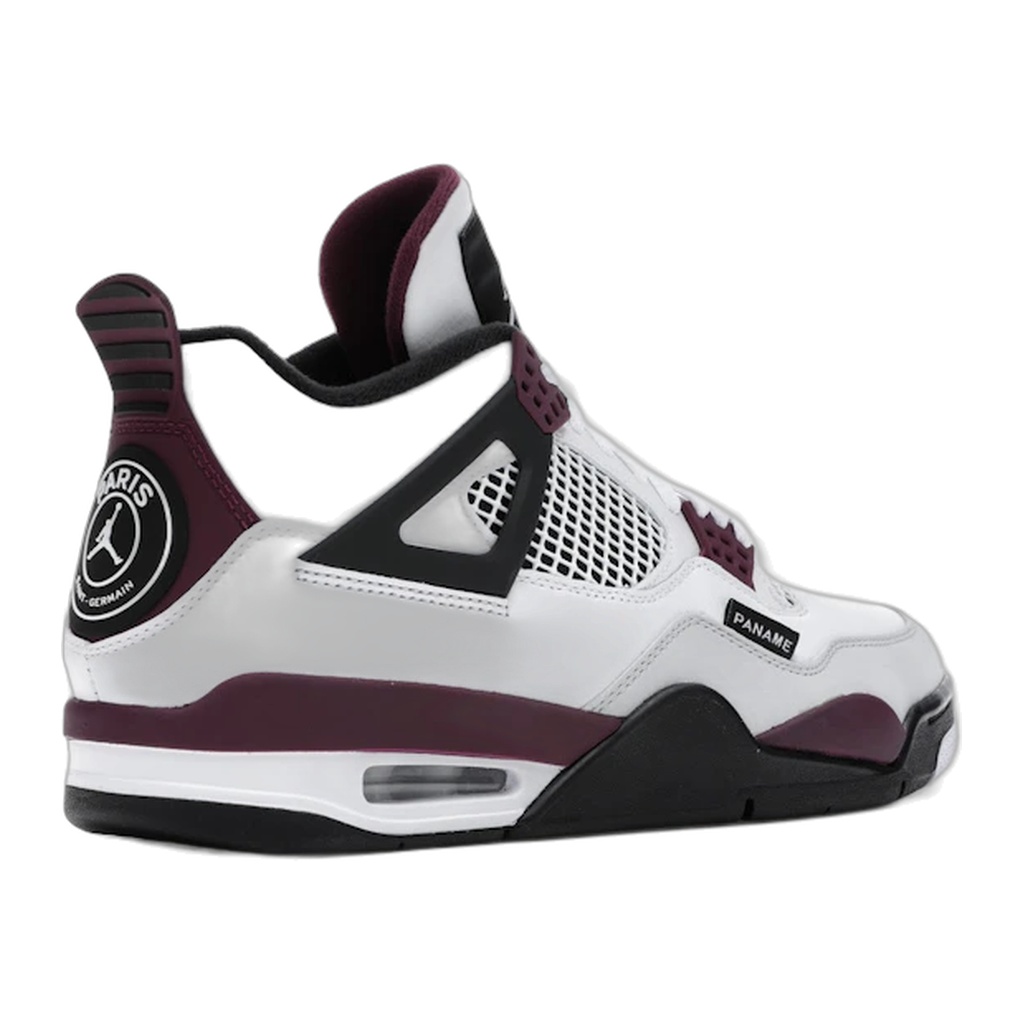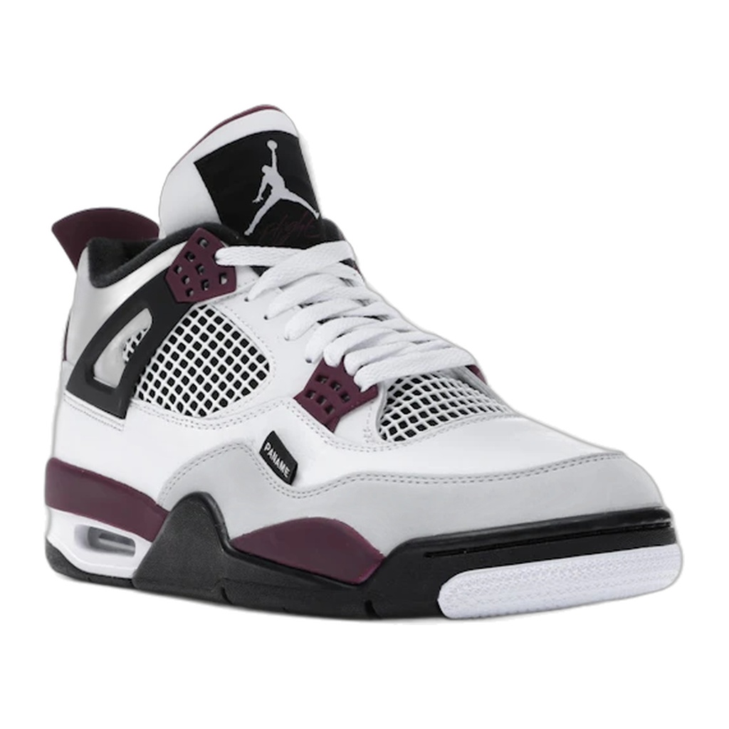 Opis: Ovaj model je rezultat saradnje sa francuskim fudbalskim klubom i spaja pariski stil sa sportskim nasleđem. Na beloj kožnoj bazi ističu se detalji u bogatoj „Bordeaux“ boji vina, dok crni elementi pružaju oštar kontrast. Na prednjem delu se nalazi diskretna etiketa „PANAME“, dok je na peti postavljen poseban PSG x Jumpman grb. Patika je idealna za sve koji traže elegantniju verziju legendarne četvorke sa jasnom sportskom pričom.