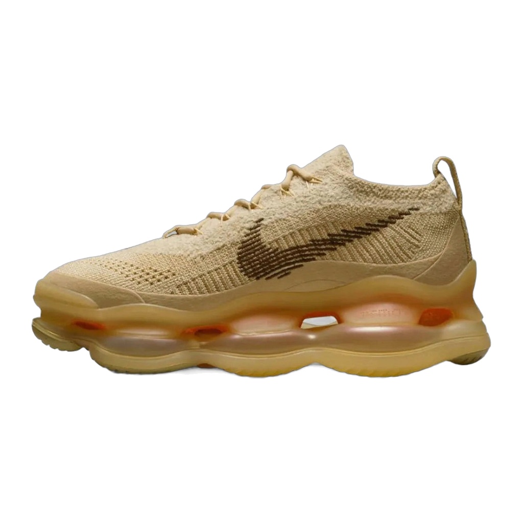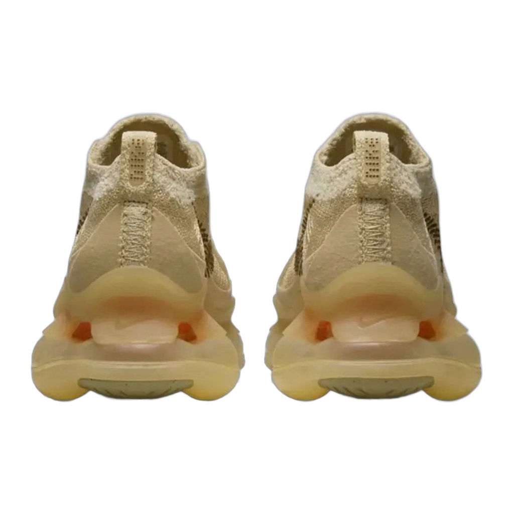 Opis: Ovaj model donosi toplu, „earthy“ estetiku na najmoderniju Air Max platformu. Gornjište od Flyknit materijala izrađeno je u bogatoj Sesame (boja susama/bež) nijansi, koja pruža prirodniji i mekši izgled ovoj futurističkoj silueti. Masivni, prozirni vazdušni đon često dolazi sa blagim mlečnim ili braon odsjajem, dok tamniji detalji na Swoosh logotipu i peti daju savršen kontrast ovoj neutralnoj bazi.