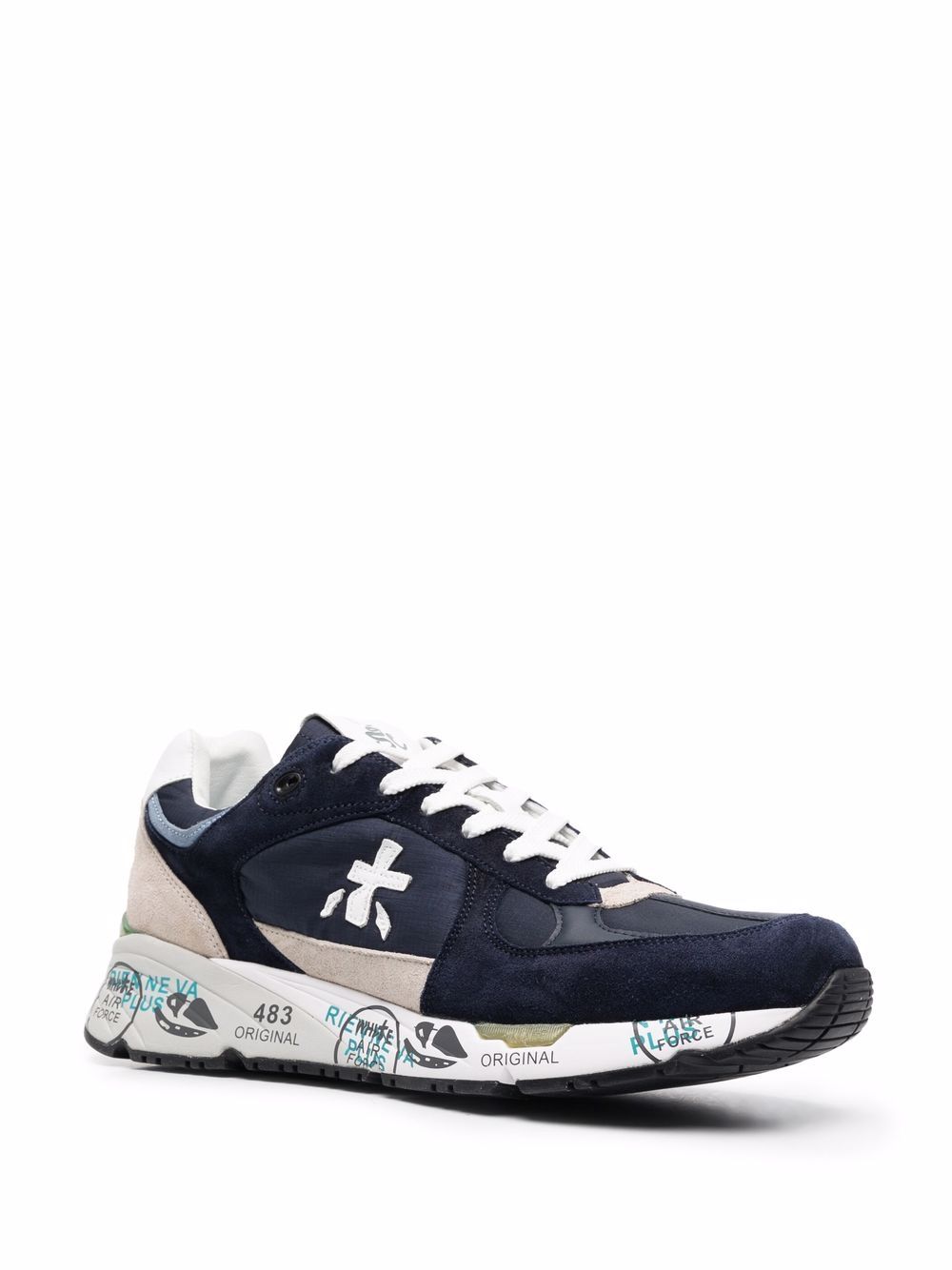 Opis: Ovaj model iz Mase linije donosi duboku teget (navy) osnovu izrađenu od izdržljivog tehničkog najlona, upotpunjenu bogatim slojevima antilopa u istoj nijansi. Kontrast prave svetlo sivi i bež detalji na peti i bočnim stranama, dok beli kožni logo i bele pertle daju patici čist, sportski završetak. Đon je, kao i kod ostalih modela iz serije, bogato dekorisan crnim i plavim „stamp“ grafikama koje su zaštitni znak brenda.